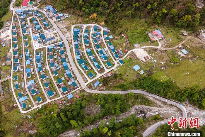 圖為5月16日,西藏墨脫公路上的達(dá)木珞巴民族鄉(xiāng)貢日村景象,該村此前為舊墨脫公路物資轉(zhuǎn)運(yùn)點(diǎn),被稱為“80K”。(無(wú)人機(jī)照片) 中新社記者 江飛波 攝