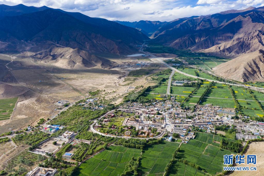 空中俯瞰山南市桑耶鎮(zhèn)(6月2日攝,無(wú)人機(jī)照片)。新華社記者 普布扎西 攝