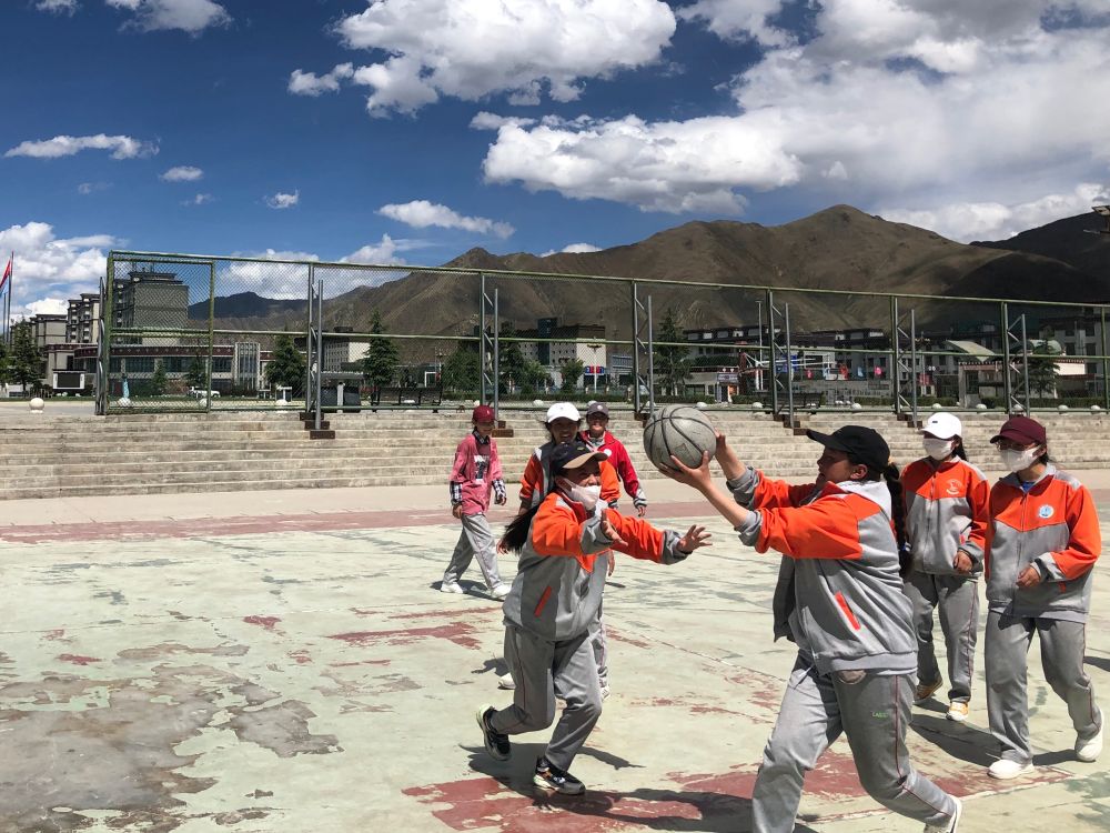 6月的拉薩雖然氣溫只有20多度,但高原的日光仍然照得人火辣辣的。在一片綠色的水泥籃球場上,五六個(gè)男孩正在進(jìn)行一場籃球比賽。定睛一看,他們之中,一個(gè)藏族女孩的矯健身影尤為顯眼。