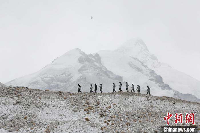 圖為珠峰邊境派出所民警在珠峰腳下執(zhí)勤巡邏。珠峰邊境派出所供圖