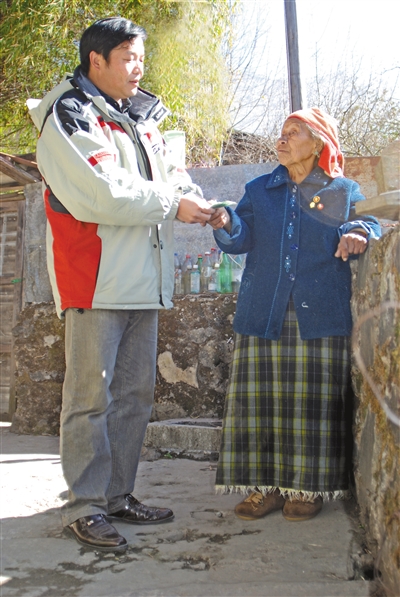 楊年華與“國(guó)旗阿媽啦”次仁曲珍老人在交談。
