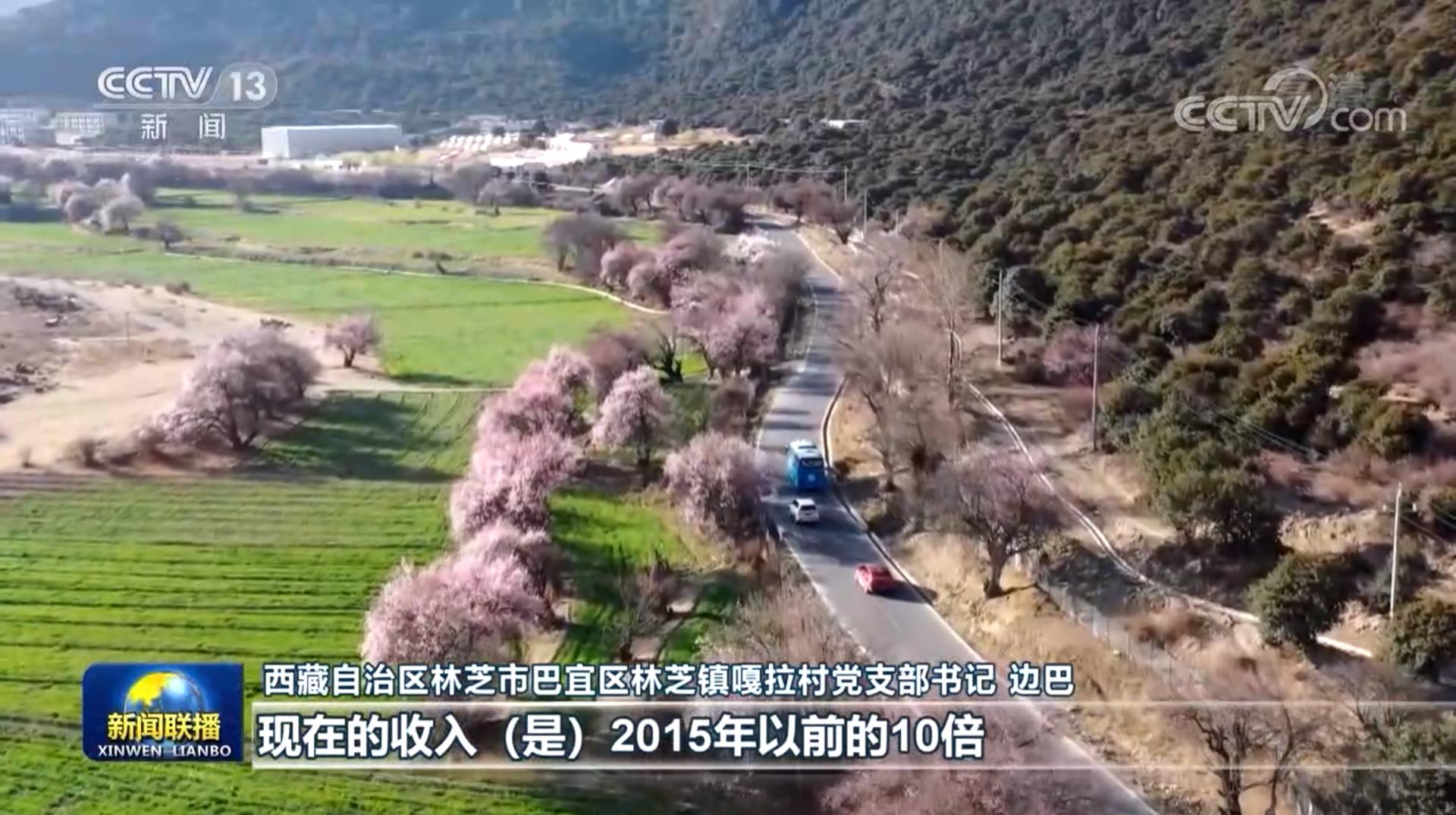 西藏自治區(qū)林芝市巴宜區(qū)林芝鎮(zhèn)嘎拉村黨支部書記 邊巴:以前,桃樹(被)群眾砍下來燒飯,后來,我們修復(fù)生態(tài)。2015年,我們的旅游基礎(chǔ)設(shè)施全方面打造,現(xiàn)在的收入(是)2015年以前的10倍,現(xiàn)在群眾都明白綠水青山就是金山銀山。