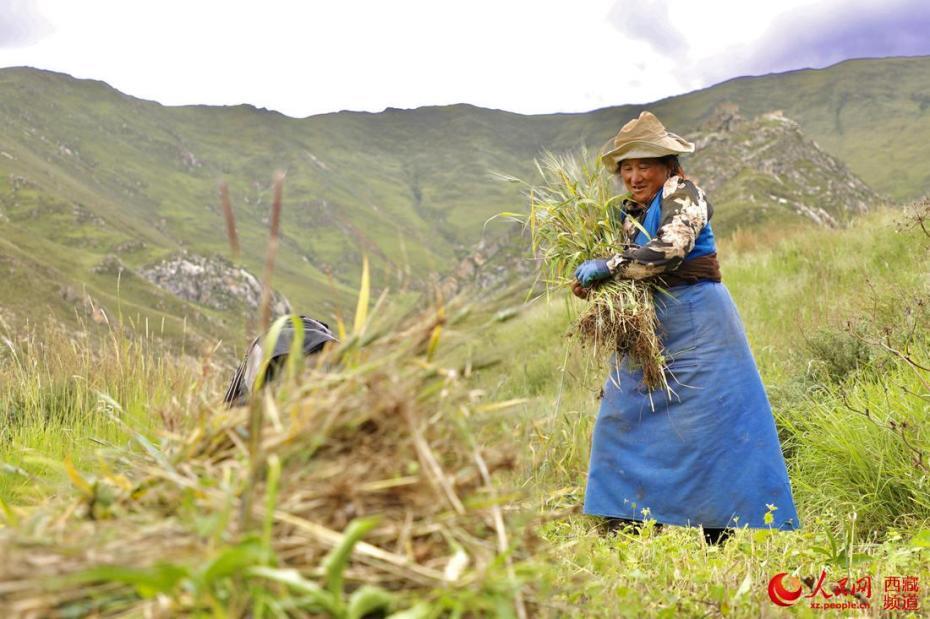 村民在田間收獲青稞。人民網(wǎng) 次仁羅布攝