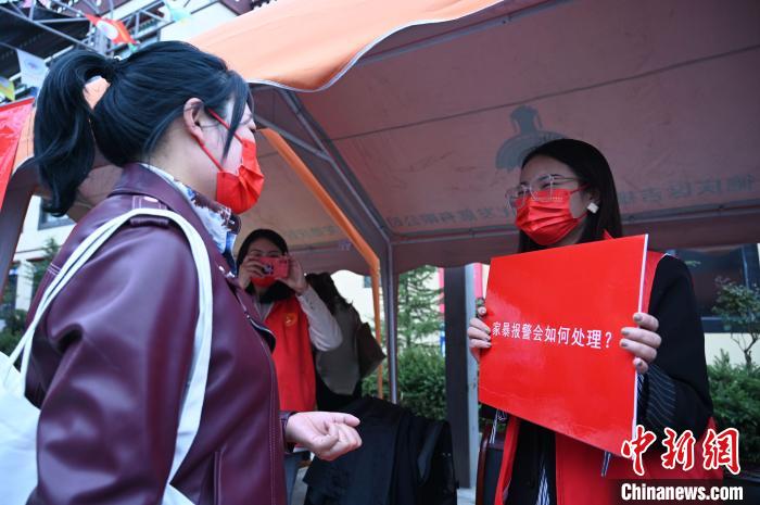 圖為市民與志愿者互動。 趙朗 攝