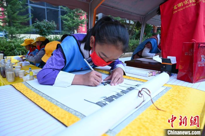 圖為學(xué)生在寫藏文書法。 趙朗 攝