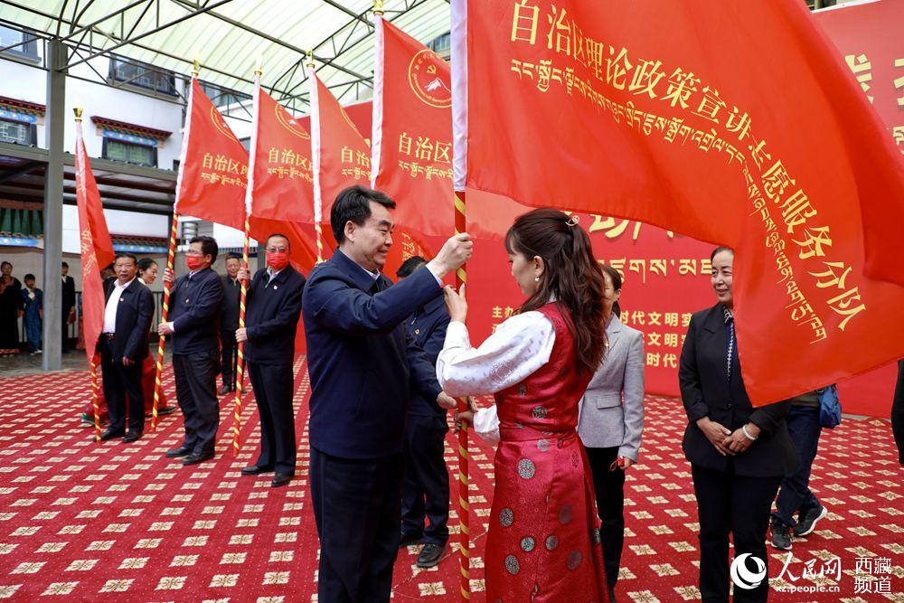 向理論政策宣講志愿服務分隊授旗。人民網 次仁羅布攝