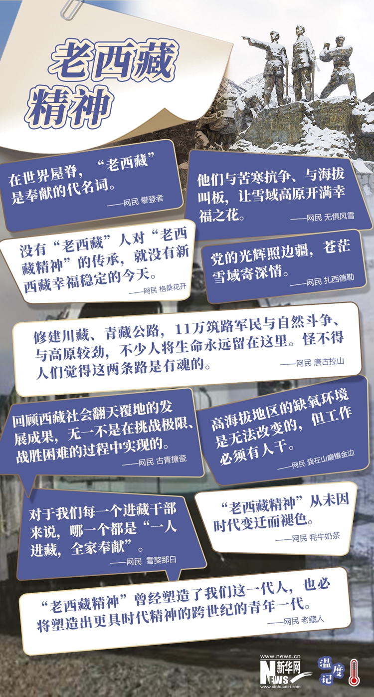 此后的幾十年間,一批又一批、一代又一代援藏干部、駐藏官兵踏上世界屋脊,扎根雪域高原,和當(dāng)?shù)厝罕娨坏?,推動西藏各項事業(yè)又快又好發(fā)展,讓千年雪域高原變了樣,也賦予“老西藏精神”更為豐富的時代內(nèi)涵?!吧谶@里很脆弱,生命在這里也很頑強。”網(wǎng)民們在社交平臺上表達(dá)對雪域高原心向往之的同時,更不忘歌頌歷久彌新的“老西藏精神”。歷經(jīng)時代的變遷,這種精神正在感召并鼓舞更多人,扎根邊疆,造福西藏,讓那里的山水永遠(yuǎn)碧藍(lán)、綺麗,讓那里的土地永遠(yuǎn)充滿希望、幸?;ㄩ_。(文字:徐可 海報設(shè)計:王曄)