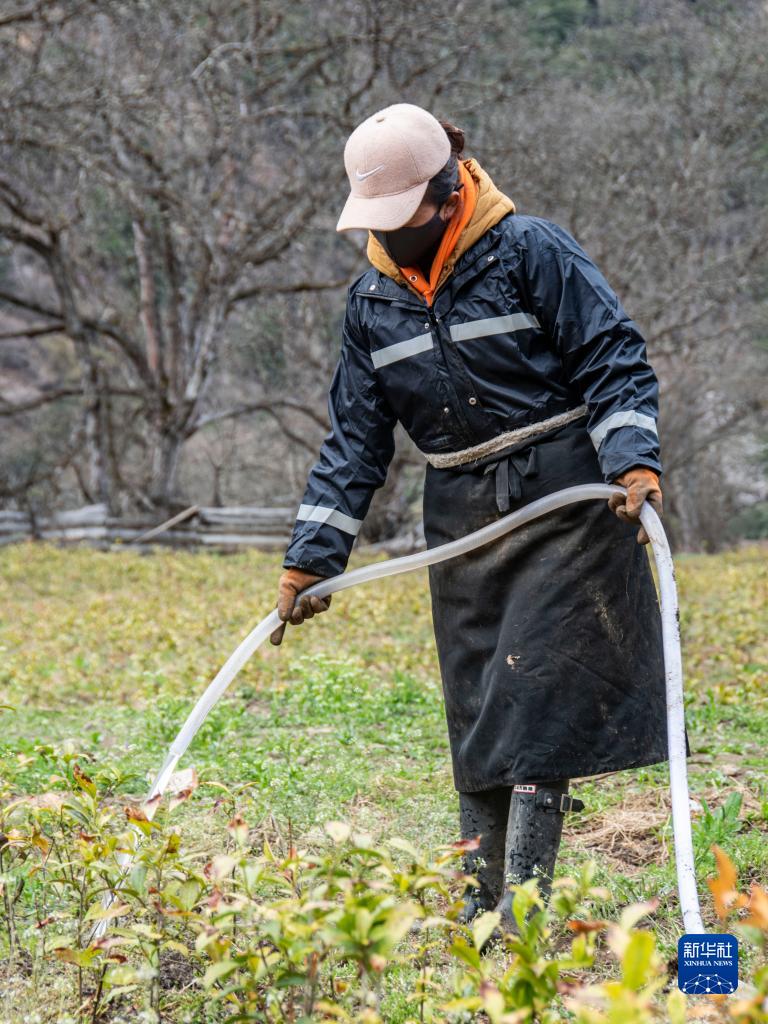 在西藏林芝市波密縣藏芝星農(nóng)業(yè)科技有限公司茶園里,茶田管護員正忙著給茶樹澆水除草,門口的項目牌上展示著茶樹品種、生長周期和管護注意事項。“茶園讓我們增加了新的收入?!笨粗F(xiàn)代化的連片茶田,在此工作的古鄉(xiāng)雪瓦卡村32歲的村民索朗措姆由衷感慨。