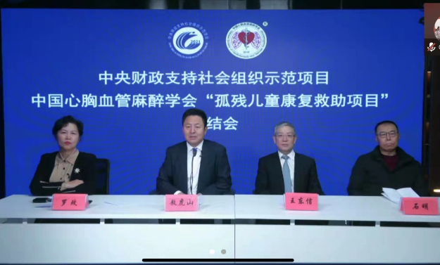 2022年1月26日,中國(guó)心胸血管麻醉學(xué)會(huì)孤殘兒童康復(fù)救助項(xiàng)目總結(jié)會(huì)通過(guò)線上線下相結(jié)合方式舉行。民政部?jī)和@緝和@幪庨L(zhǎng)李勇,中國(guó)醫(yī)學(xué)科學(xué)院阜外醫(yī)院麻醉科主任醫(yī)師、中國(guó)心胸血管麻醉學(xué)會(huì)秘書長(zhǎng)敖虎山,國(guó)家兒童醫(yī)學(xué)中心主任、首都醫(yī)科大學(xué)附屬北京兒童醫(yī)院院長(zhǎng)倪鑫,中國(guó)人民解放軍總醫(yī)院第七醫(yī)學(xué)中心附屬八一兒童醫(yī)院院長(zhǎng)封志純等分別致辭,總結(jié)會(huì)由中國(guó)心胸血管麻醉學(xué)會(huì)孤殘兒童康復(fù)救助項(xiàng)目領(lǐng)隊(duì)羅玫主持。