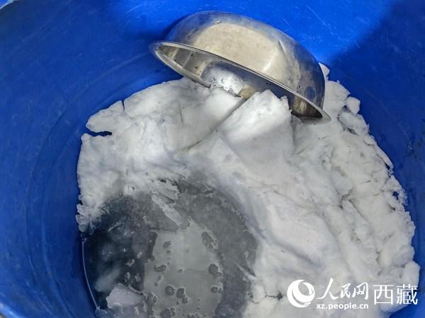 沒有水的日子里,囤雪是常規(guī)操作?!耙煌把┑糜靡惶鞎r間才能化開。化雪還有技巧呢,桶里必須預(yù)留部分水,再放到爐邊才行?!彪m然水管從山下接到了哨所,但冬季氣溫降到零下幾十度,水管結(jié)冰,化雪取水的傳統(tǒng)依然不能丟?!跋匆伦鲲堄玫亩际茄┧€是要珍惜。”埡口哨所班長文盛高笑著說。