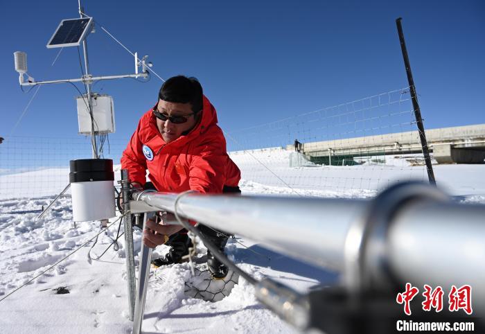 圖為觀測(cè)員查看監(jiān)測(cè)設(shè)備,在納木錯(cuò)環(huán)湖線上約有七八個(gè)水文氣象監(jiān)測(cè)點(diǎn)。趙朗 攝