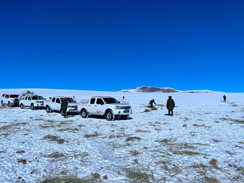 改則縣林草局工作人員把草料送到管護(hù)站,管理員們再把這些草料送到藏羚羊棲息比較多的地方。于是,接下來的兩天,工作人員們就一直在這片廣袤的草場上撒布草料,希望幫助藏羚羊們度過這個格外寒冷的冬天。前前后后,半個月下來,改則縣的工作人員撒出去十幾噸的草料,幫助很多藏羚羊度過了這個缺少食物的冬天。在改則縣,23個管護(hù)站,二百多名管護(hù)員,看管著十萬多平方公里的草場,他們對于轄區(qū)的草木生靈、萬水千山都很是熟悉。哪里常棲息著什么動物,他們多是信手拈來。