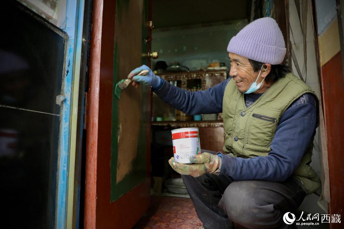 三有村村民正在為藏歷新年做準備。人民網(wǎng) 次仁羅布攝