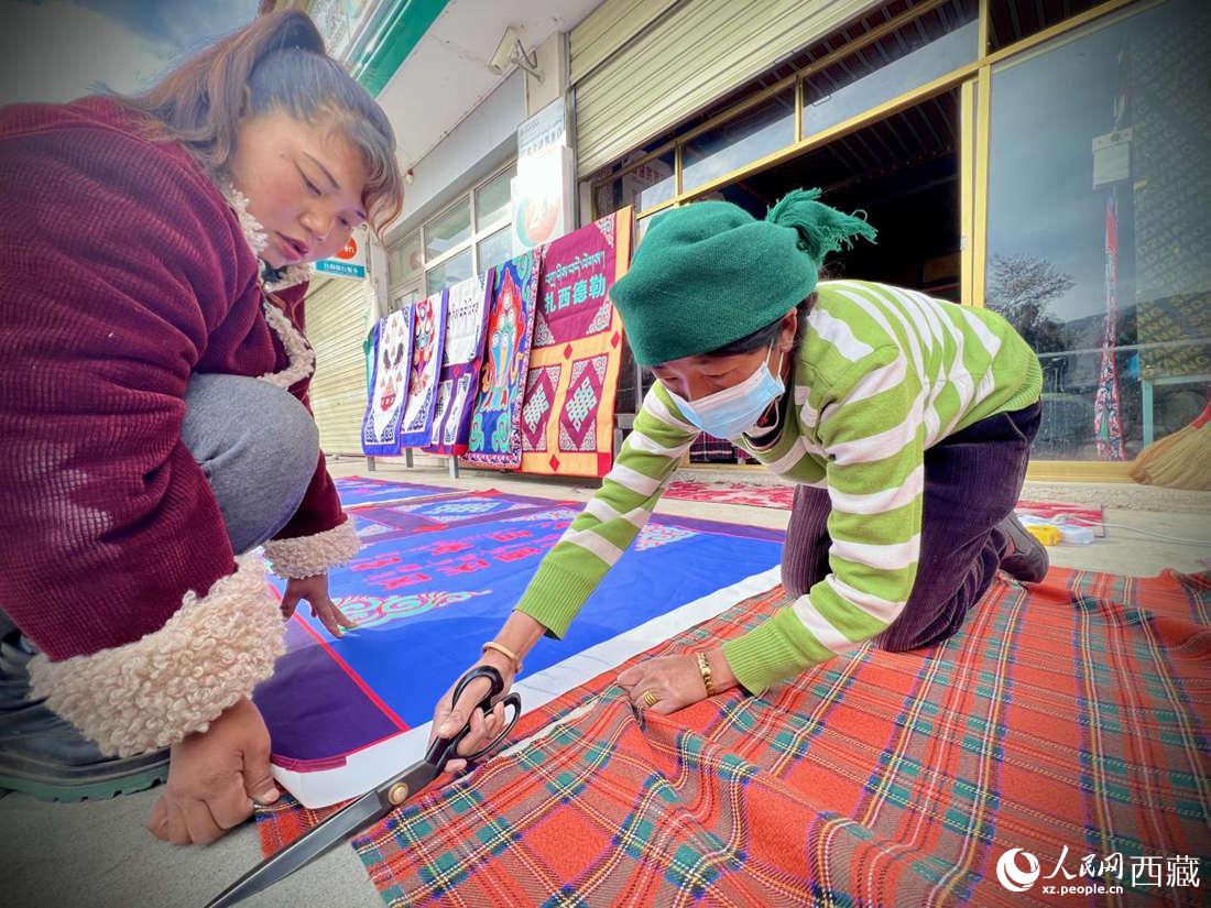 農牧民專業(yè)合作社里的村民正在制作門簾。人民網(wǎng) 次仁羅布攝