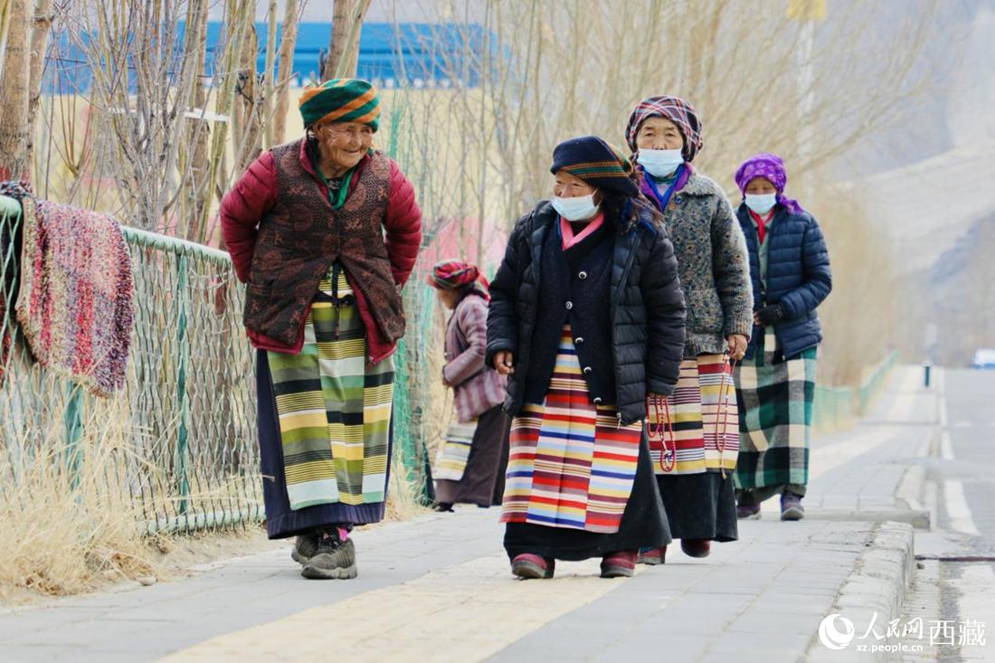 三有村的老人們在散步。人民網(wǎng) 次仁羅布攝
