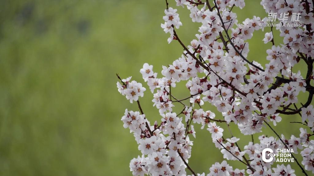 眼下,桃花開得正盛,漫山遍野的桃花將這里變?yōu)橐粋€海拔高度近3000米的“世外桃源”。