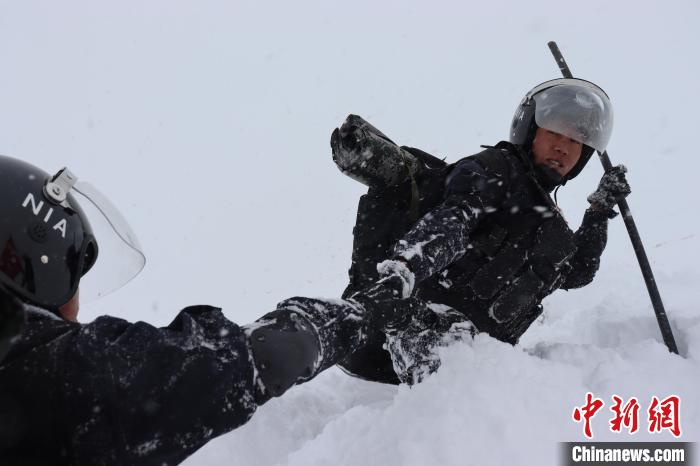 圖為亞熱邊境派出所民警救助被困車(chē)輛。日喀則邊境管理支隊(duì) 攝