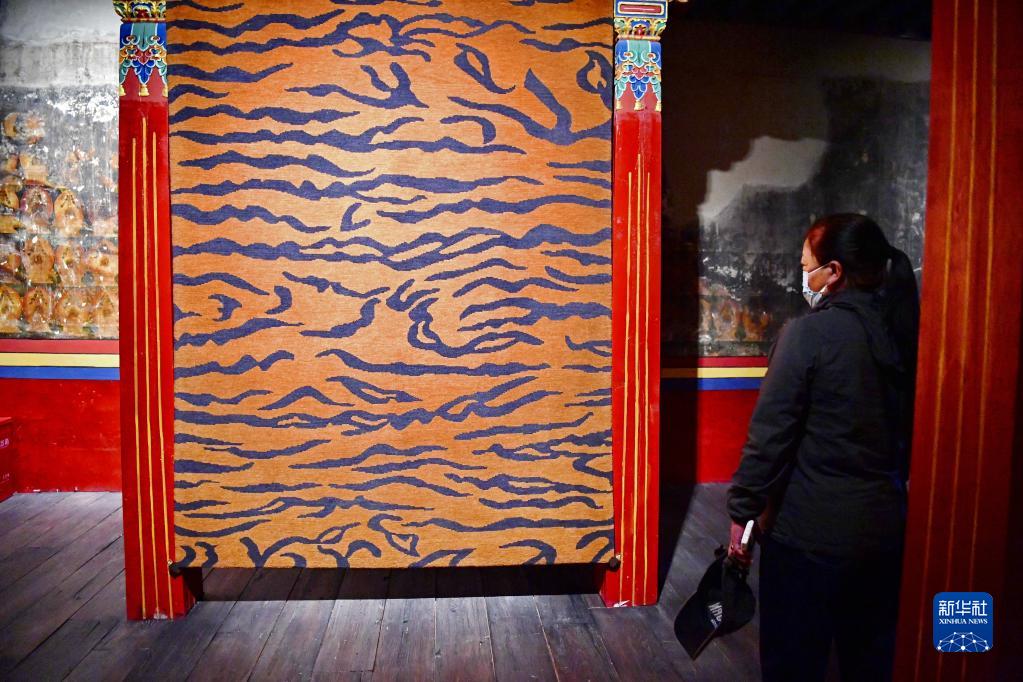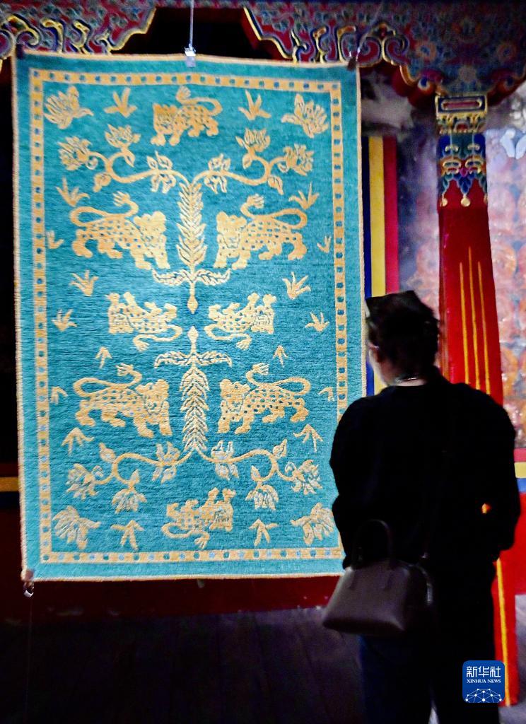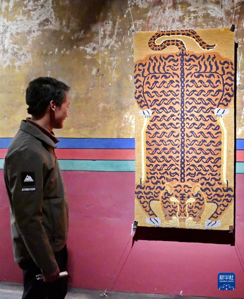 當日,名為“智慧和無畏”的“虎毯”展覽在拉薩吉本崗藝術中心展出。西藏的非遺工作者根據(jù)古代藏毯藏品重新挖掘,整理了以“虎”為主題的圖案,設計制作了本次展覽作品。本次展覽展出20余件各具特色的藏毯藝術作品,展覽將持續(xù)到5月初。