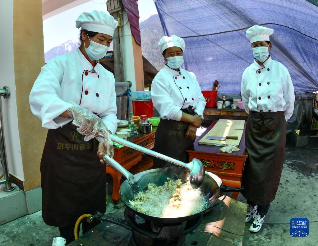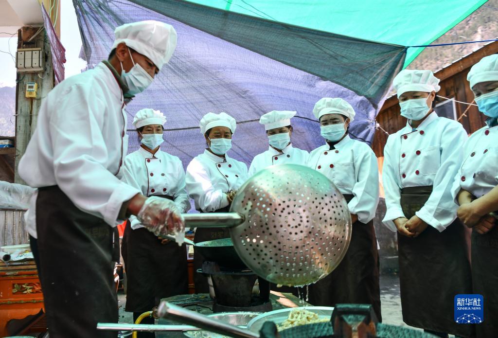 4月21日,西巴村的珞巴族群眾在參加“珞巴宴”培訓(xùn)班。新華社記者 晉美多吉 攝