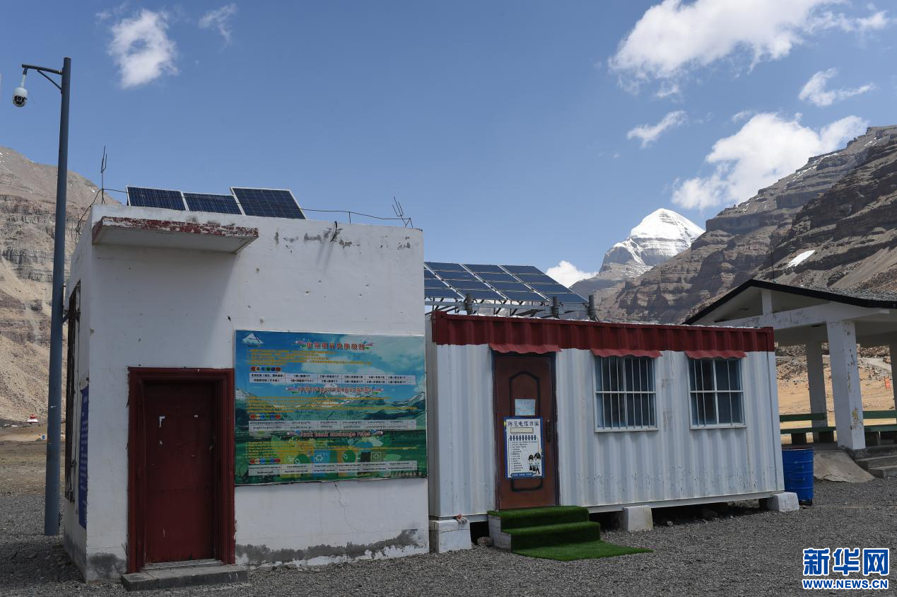 圖為岡仁波齊腳下添置的垃圾箱(4月20日攝)。新華網(wǎng) 旦增努布攝