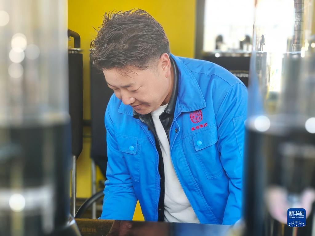 在西藏藏緣青稞科技有限公司的青稞體驗館里,32歲的拉瓊從發(fā)酵罐里倒出黃澄澄的青稞精釀啤酒液。