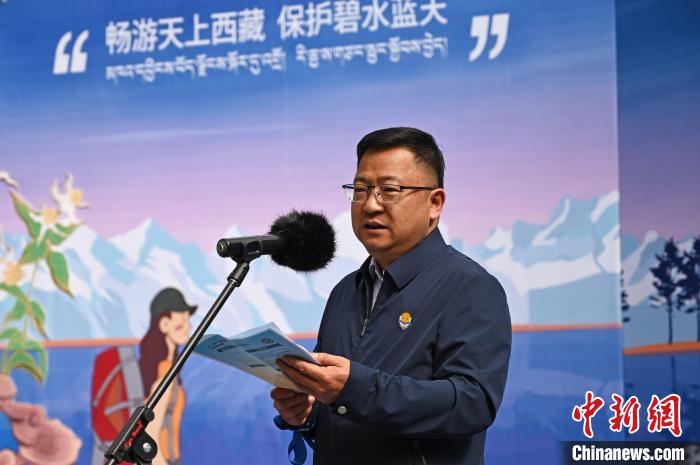 圖為西藏自治區(qū)旅發(fā)廳黨組成員、一級巡視員汪曉冬致辭。趙朗 攝
