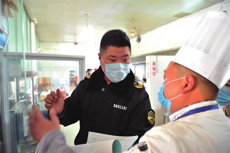 西藏自治區(qū)市場監(jiān)管局工作人員檢查學校食品安全。