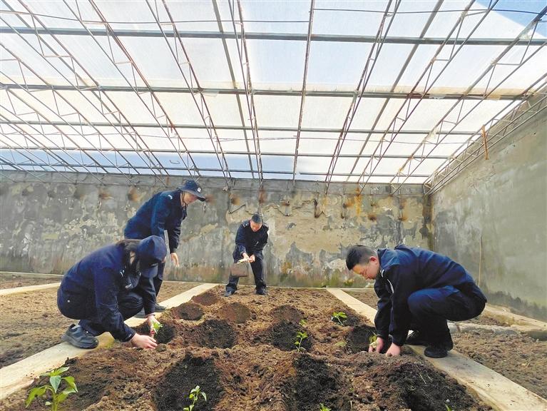 圖為日喀則市康馬縣薩瑪達(dá)邊境派出所民警在陽光棚里種菜。 記者 趙文慧 通訊員 黃偉媛 攝