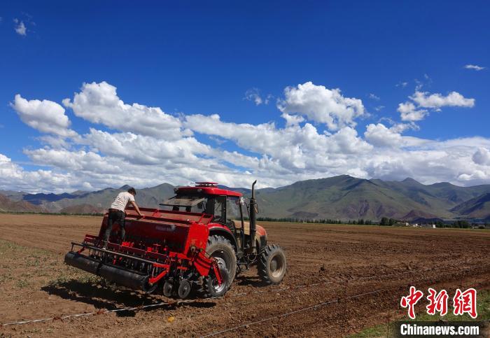 6月末的林周縣曲嘎強(qiáng)村,村民們正在播種燕麥飼草,機(jī)器在田間穿梭不停,一派繁忙的勞作景象。