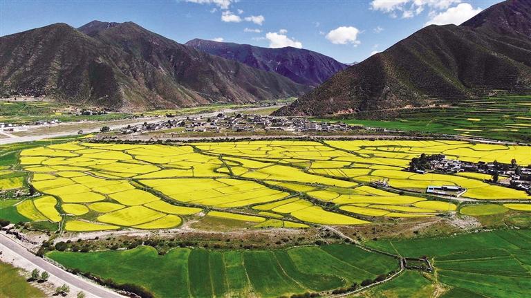記者了解到,今年墨竹工卡縣種植小油菜3.5萬畝,通過“一桶好油 ”計(jì)劃發(fā)展一、二、三產(chǎn)業(yè)融合,推動(dòng)墨竹小菜籽油的整體發(fā)展,讓百姓享受到發(fā)展小油菜產(chǎn)業(yè)帶來的經(jīng)濟(jì)成果,切實(shí)做好脫貧攻堅(jiān)和鄉(xiāng)村振興的有效銜接。每逢墨竹工卡縣小油菜花開時(shí),金黃的小油菜花和翠綠的青稞相交融,織成了一幅美不勝收的天然畫卷。