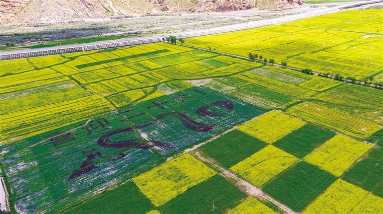 墨竹工卡縣農(nóng)業(yè)農(nóng)村局相關(guān)負(fù)責(zé)人告訴記者,這次的創(chuàng)意油菜花田和往年相比大不相同,為了迎接黨的二十大勝利召開,他們?nèi)α?00畝地人工種植了專門引進(jìn)的四種彩色油菜花歷時(shí)兩個(gè)多月它們開花啦!看出這是什么圖案了嗎?現(xiàn)在記者給你揭曉(最上面是喜迎二十大字,字下中間是哈達(dá)、左邊是代表松贊干布和文成公主,右邊是愛心)。怎么樣,大家看出來了嗎?現(xiàn)在扎西崗村的創(chuàng)意油菜花都開了,從現(xiàn)在開始到接下來的半個(gè)月都是賞花期,一起去打卡墨竹工卡縣鄉(xiāng)村觀賞小油菜花的勝地吧,喜歡攝影的朋友更不能錯(cuò)過哦!