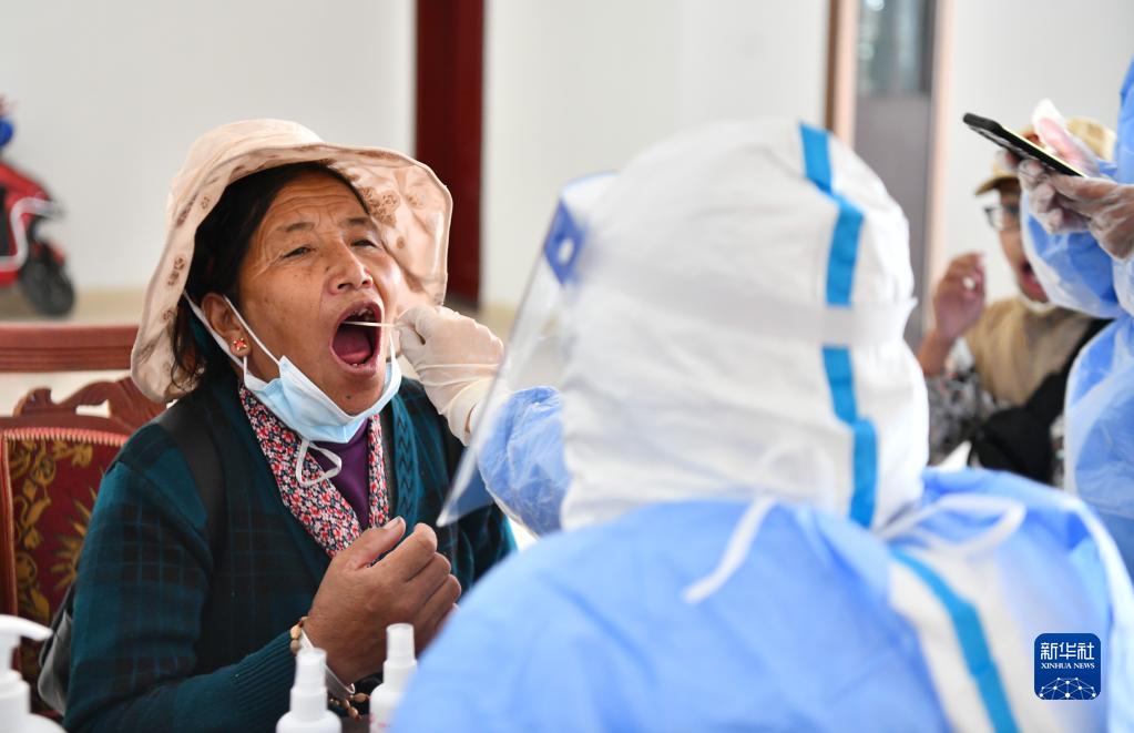 8月10日上午,居民在拉薩市某小區(qū)核酸采樣點接受核酸采樣。新華社記者 晉美多吉 攝