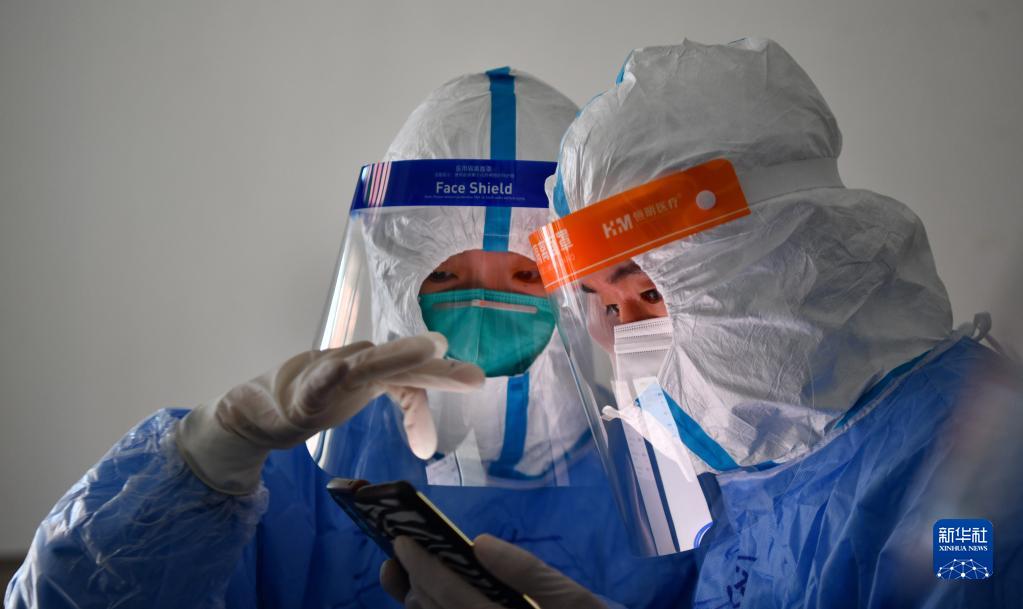 8月10日上午,在拉薩市某小區(qū)核酸采樣點,工作人員為采集核酸樣本進行準備工作。新華社記者 晉美多吉 攝