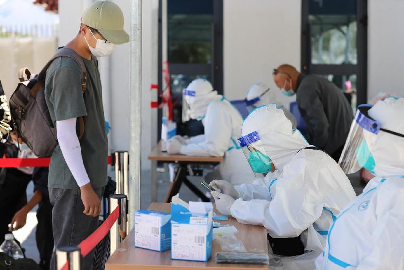 安檢大廳門口的工作崗?fù)?nèi),四張長桌搭建起“二道”卡控點,6名“大白”對進站旅客進行著一人不落的“三天兩檢”核酸檢測陰性證明查驗,查驗通過后方可進入“三道”卡控點進行抗原檢測?!霸趪?yán)密落實自治區(qū)疫情防控各項措施中,我們不講條件、不打折扣、不惜代價。今天早上,我們邀請青藏集團公司疾控專業(yè)人員對車站全員進行了緊急的抗原檢測流程培訓(xùn),做足準(zhǔn)備全力應(yīng)對挑戰(zhàn)和考驗,確保執(zhí)行、落實到位。”拉薩火車站黨委書記楊強說。