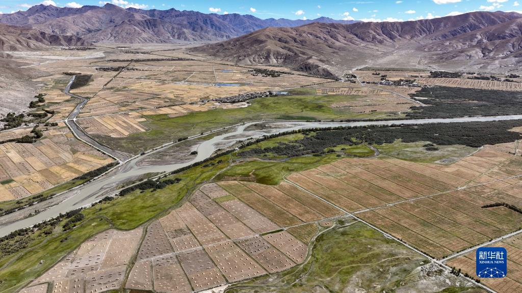 年楚河流域西藏日喀則江孜段富饒的農(nóng)田(9月19日攝 無人機照片)。