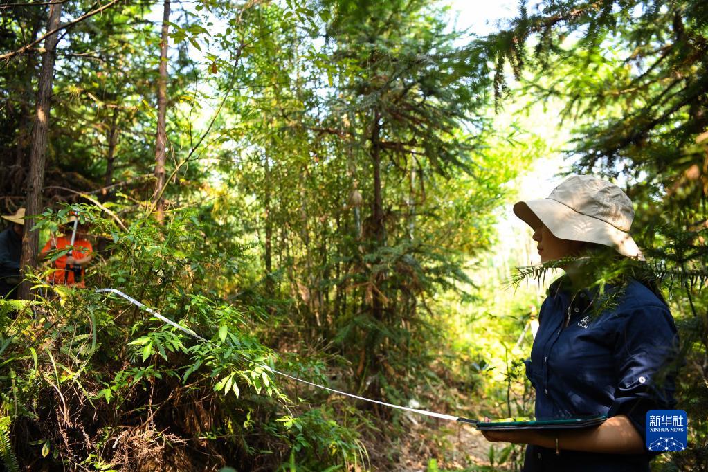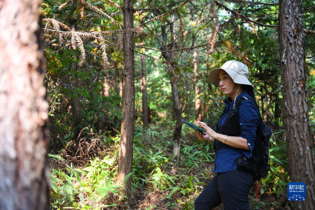 9月22日,白拉曲珍在位于廣東韶關(guān)樂昌市張溪村的生態(tài)監(jiān)測樣地工作。新華社記者 鄧華 攝