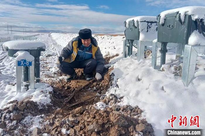 在唐古拉山地區(qū),空氣中的含氧量不足平原地區(qū)的50%,一個(gè)看似簡(jiǎn)單而又行云流水的檢查作業(yè),一套下來(lái),工作人員們氣喘吁吁?!敖裉焯乒爬奶鞖膺€不錯(cuò),風(fēng)也不大?!泵遍苌?、眉毛上結(jié)滿了霜花的梁海峰一邊檢查一邊說(shuō)。