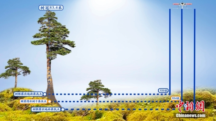9日,由中國科學(xué)院植物研究所、國家重要野生植物種質(zhì)資源庫辰山中心—上海辰山植物園、中華環(huán)境保護基金會、“野性中國”工作室、西藏自治區(qū)林芝市察隅縣林業(yè)和草原局等組成的中國巨樹科考隊發(fā)布了目前中國第一高樹云南黃果冷杉的準確高度為83.4米,同時發(fā)布其等身照。