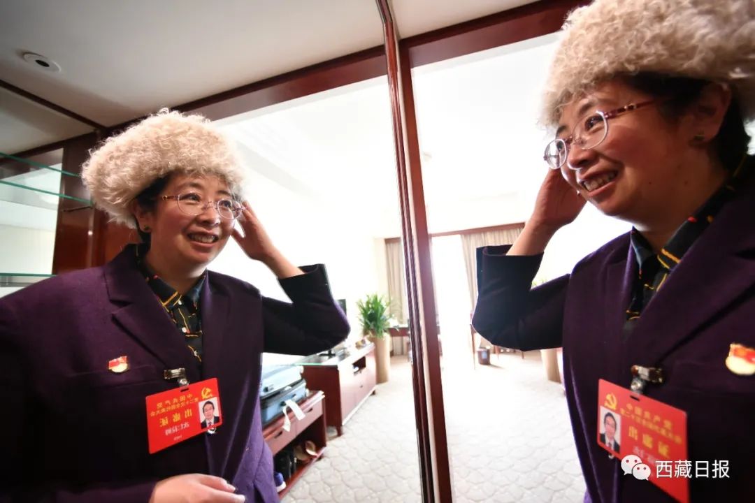 作為那曲市特殊教育學(xué)校校長(zhǎng),次仁拉姆代表此次赴京參會(huì)專門(mén)戴上了學(xué)生親手制作的帽子,將以飽滿的熱情開(kāi)好這次大會(huì)。記者 旦增西旦 攝