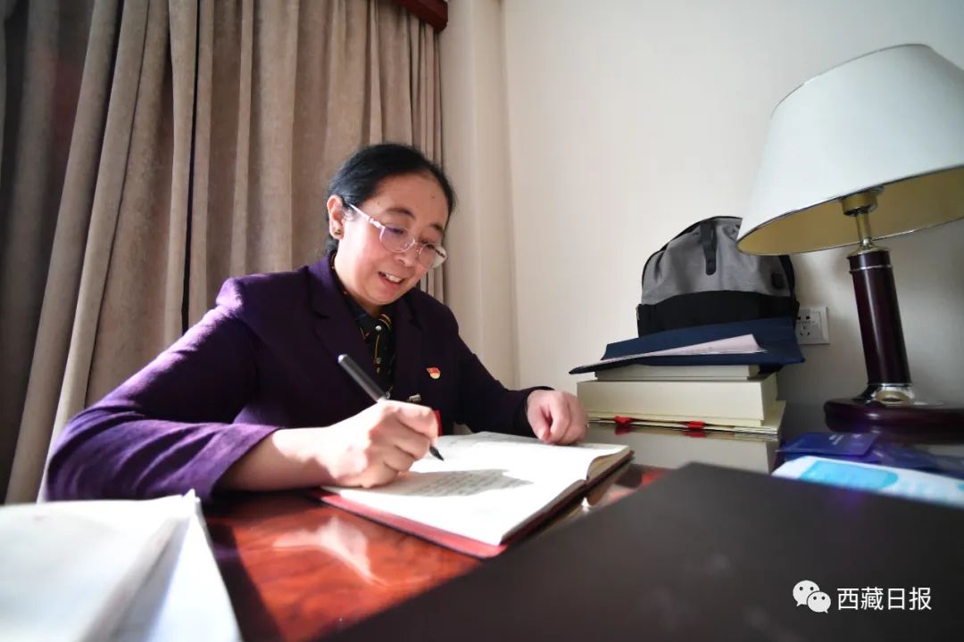 這是次仁拉姆代表在撰寫(xiě)發(fā)言材料。記者 旦增西旦 攝
