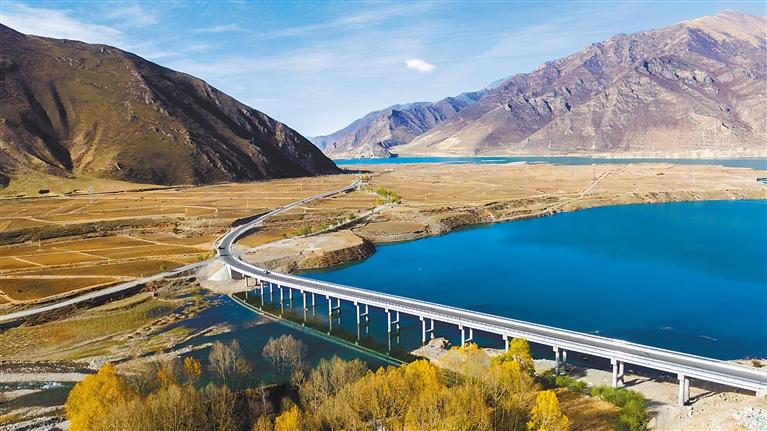 黨的十八大以來,西藏交通運(yùn)輸事業(yè)取得巨大成就,形成了縱橫交錯、四通八達(dá)的綜合交通運(yùn)輸網(wǎng)絡(luò)。十年來,全區(qū)公路總里程由6.52萬公里增至12.07萬公里,高等級(高速)公路通車?yán)锍逃?8公里增至1105公里,以拉薩為中心的3小時綜合交通圈正加快形成,拉林鐵路建成投運(yùn),復(fù)興號首次開上高原……一條條團(tuán)結(jié)線、一條條幸福路,為西藏經(jīng)濟(jì)社會發(fā)展提供了有力支撐。