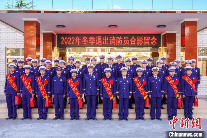 圖為退出消防員合影留念。 李國(guó)燾 攝