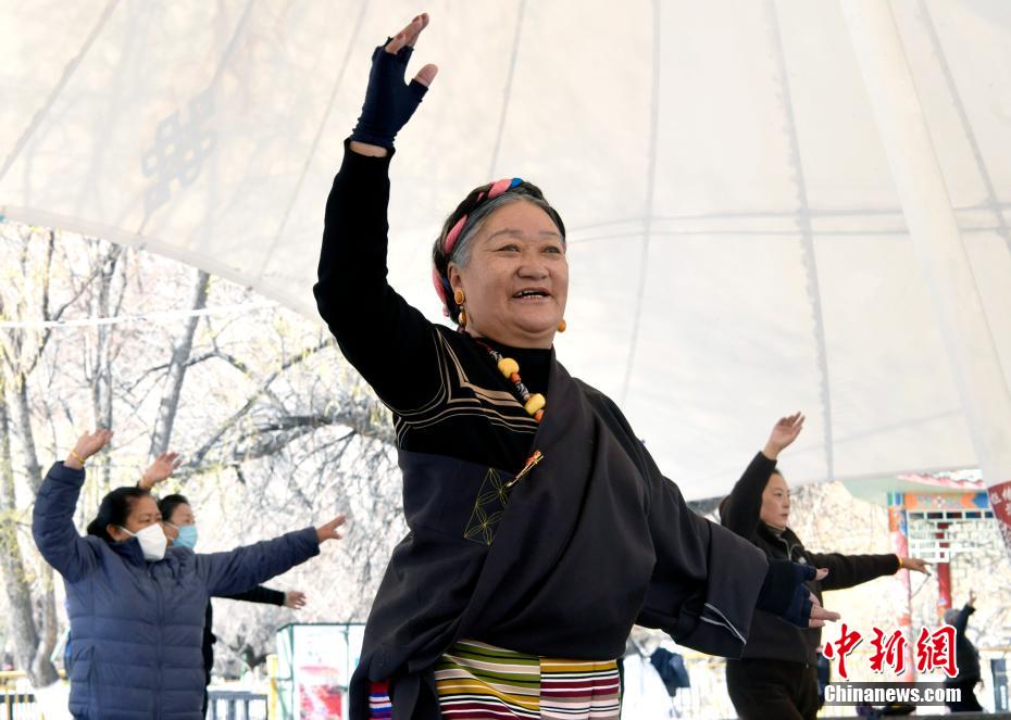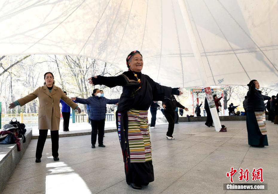 3月9日,西藏拉薩,民眾在宗角祿康公園跳舞。李林 攝