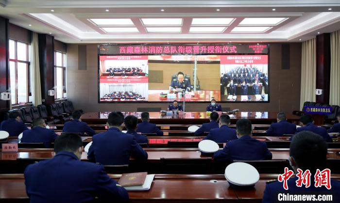 3月22日,分會(huì)場(chǎng)更換消防救援銜標(biāo)識(shí)。 西藏森林消防總隊(duì)供圖