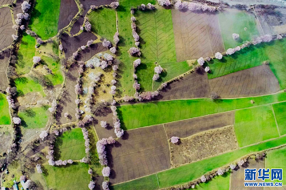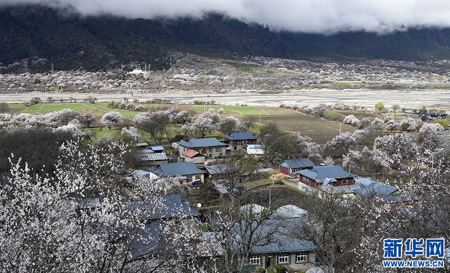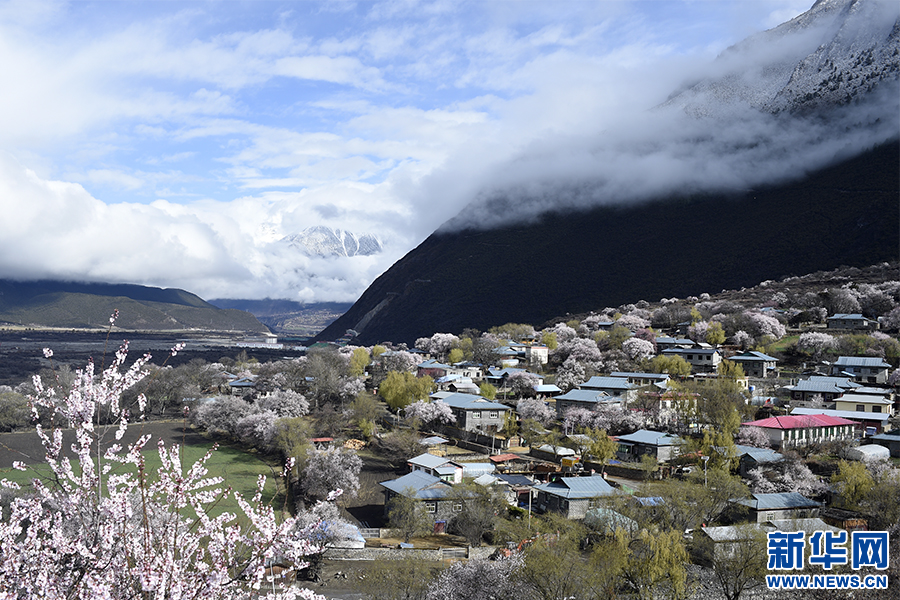 3月25日,在林芝市波密縣傾多鎮(zhèn)桃花簇擁下的小村落。新華網(wǎng) 達次攝