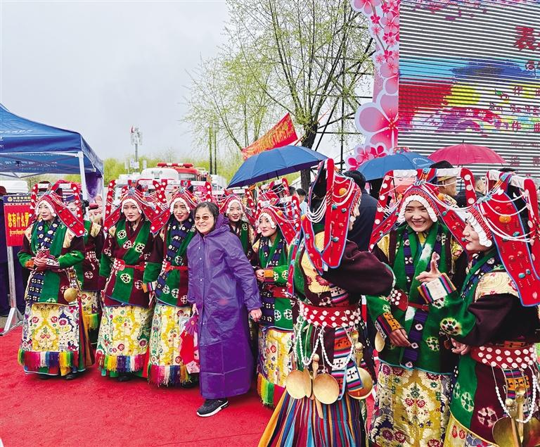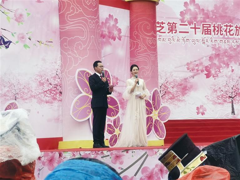 開幕式現(xiàn)場雨雪霏霏,卻擋不住市民和游客欣賞桃花、探尋春色的熱情。隨著音樂的響起,開場舞《春回大地》拉開了盛會序幕。由藏戲、舞蹈、歌曲、T臺秀等文藝節(jié)目組成的林芝歡騰頌盛世、盛世奮進(jìn)迎花開、花開高原啟新程三個篇章,不僅讓現(xiàn)場觀眾大飽眼福,也為雪山桃花環(huán)抱的林芝增添了與眾不同的人文意境。