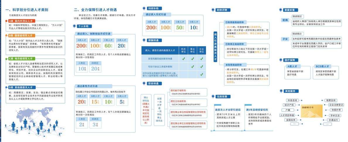 據(jù)悉,近年來,西藏自治區(qū)深入實(shí)施人才“育、引、用、留”四大工程,制定出臺(tái)了《關(guān)于加強(qiáng)和改進(jìn)新時(shí)代西藏人才工作的若干措施(試行)》,科學(xué)劃分引進(jìn)人才類別,將引進(jìn)高層次人才劃分為A、B、C、D四類。在個(gè)人補(bǔ)助、科研補(bǔ)助、薪酬待遇、職務(wù)待遇、職稱評聘、住房政策、家屬安置、醫(yī)療保障等方面全力保障引進(jìn)人才待遇。同時(shí),千方百計(jì)成就引進(jìn)人才,支持引進(jìn)人才創(chuàng)新創(chuàng)業(yè),激勵(lì)引進(jìn)人才成果轉(zhuǎn)化,實(shí)行配套表彰獎(jiǎng)勵(lì)政策。此外,在簡化優(yōu)化人才引進(jìn)程序、實(shí)施引才伯樂激勵(lì)措施方面均有明確政策。