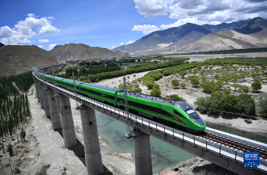 這是行駛在西藏山南市境內的復興號列車。(2022年6月22日攝)。新華社記者 覺果 攝