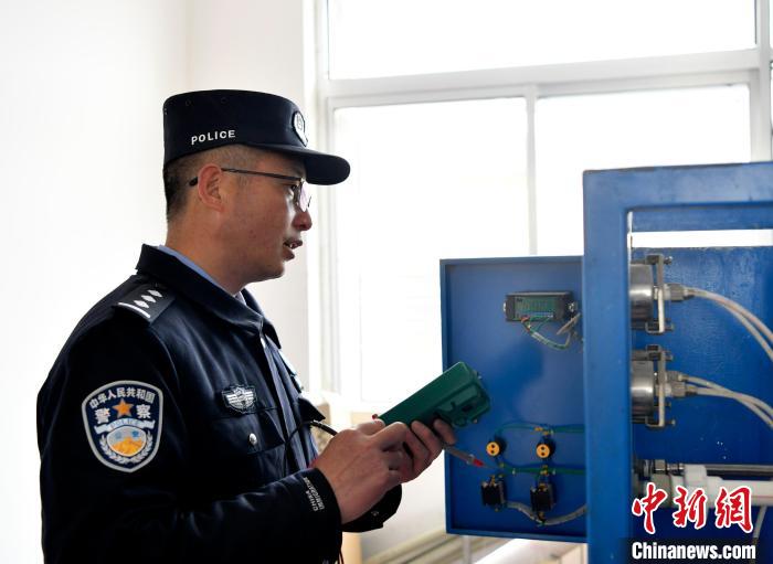 民警李加潘正在檢修保養(yǎng)自來水凈化設備?!±盍?攝
