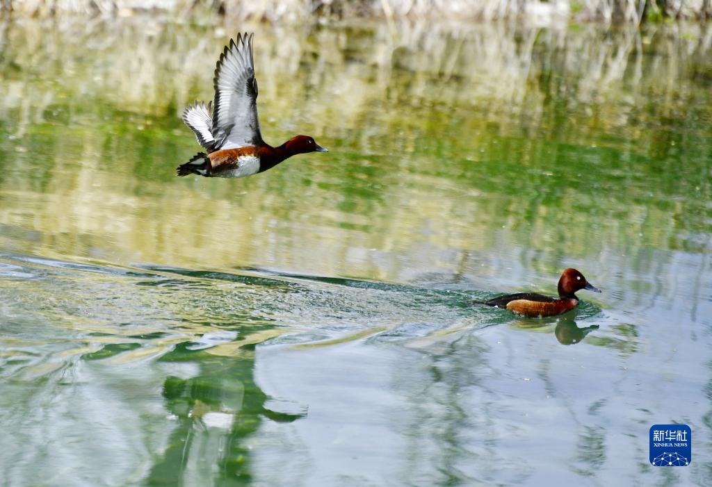 5月6日在拉魯濕地拍攝的白眼潛鴨。新華社記者 張汝鋒 攝